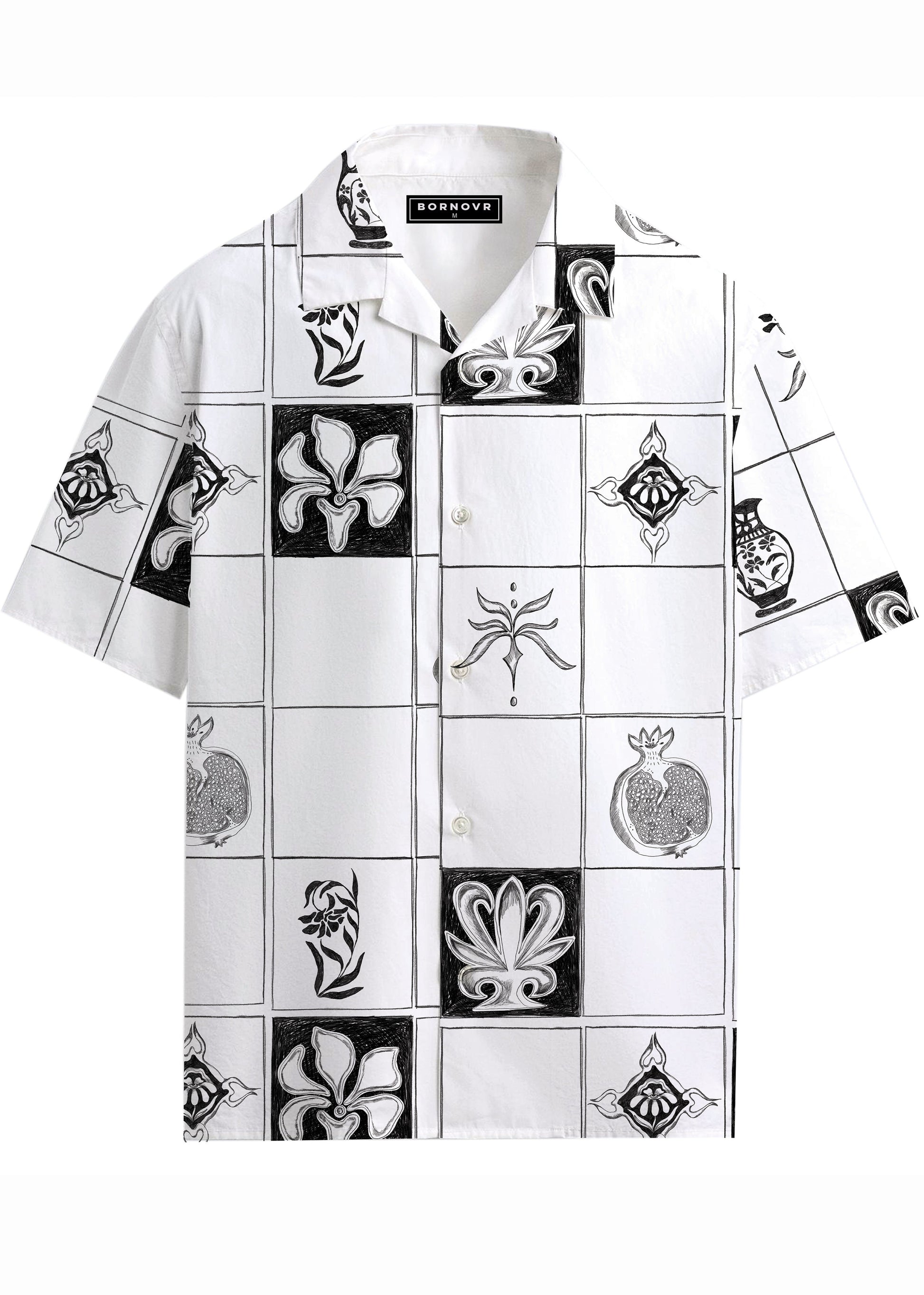 Homework is overrated — break free from the ordinary. The Homework is Dead shirt brings bold energy with its hand-drawn, monochrome tile-inspired artwork. Cut from a smooth viscose blend, it has a relaxed drape that feels as effortless as it looks. Finished with a camp collar and straight fit, this piece is made for those who don’t play by the rules.