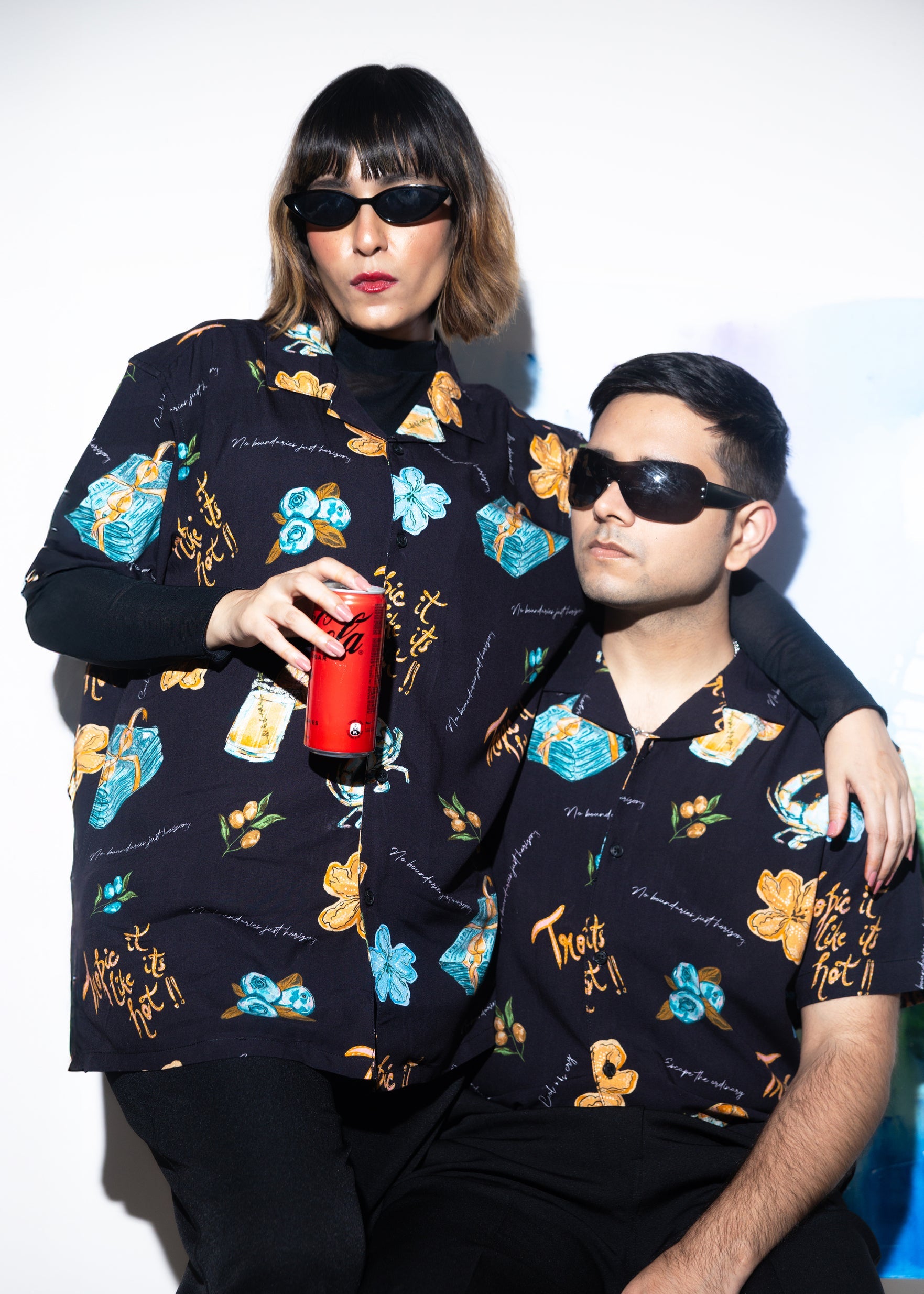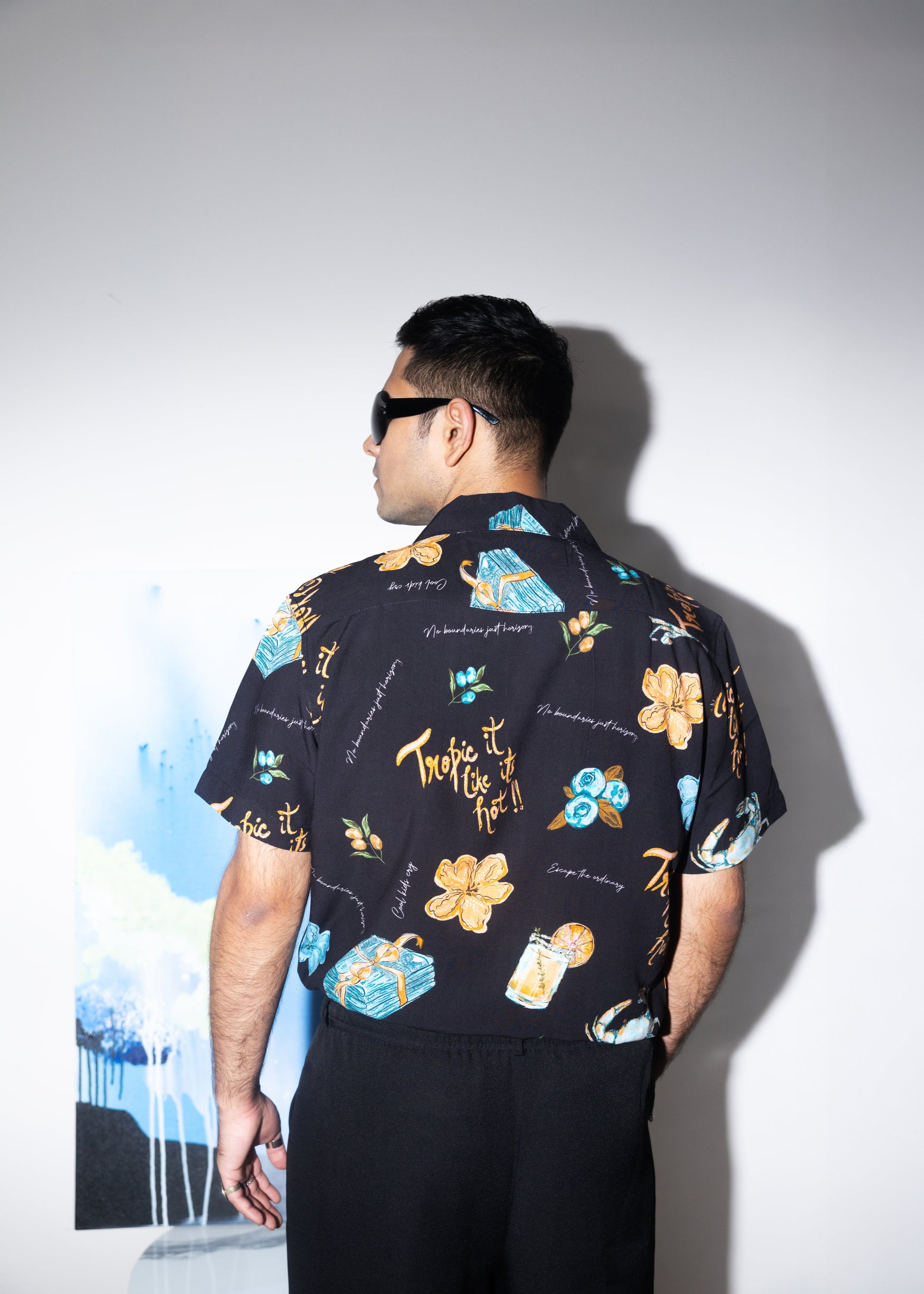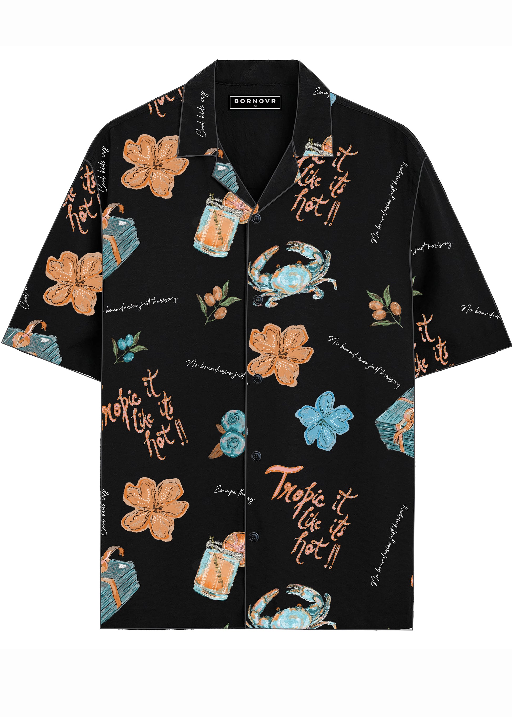 THIS CAMP COLLAR SHIRT FEATURES FUN TROPICAL PRINTS AND IS MADE FROM BREATHABLE VISCOSE FOR COMFORTABLE WEAR. IT'S RELAXED FIT SUITS BOTH CASUAL LOOK AND LAYERED STYLES